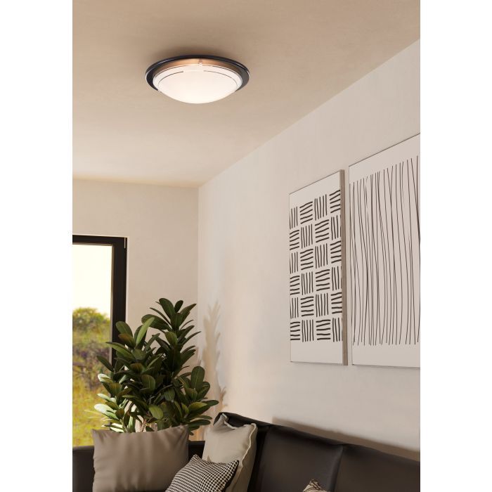 Eglo Planet Κλασική Γυάλινη Πλαφονιέρα Οροφής με Ντουί E27 σε Μαύρο χρώμα 29cm 83159