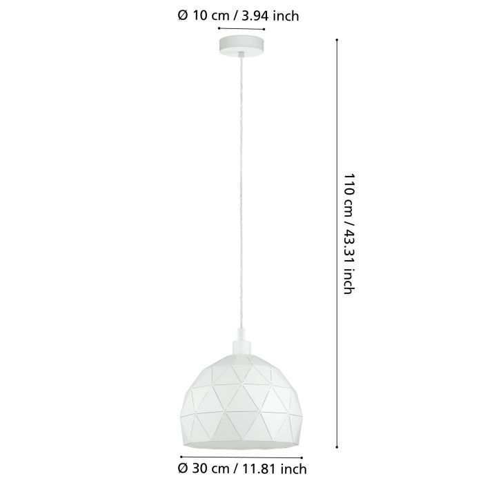 Eglo Roccaforte Κρεμαστό Φωτιστικό Μοντέρνο Μονόφωτο Καμπάνα Λευκό 97854