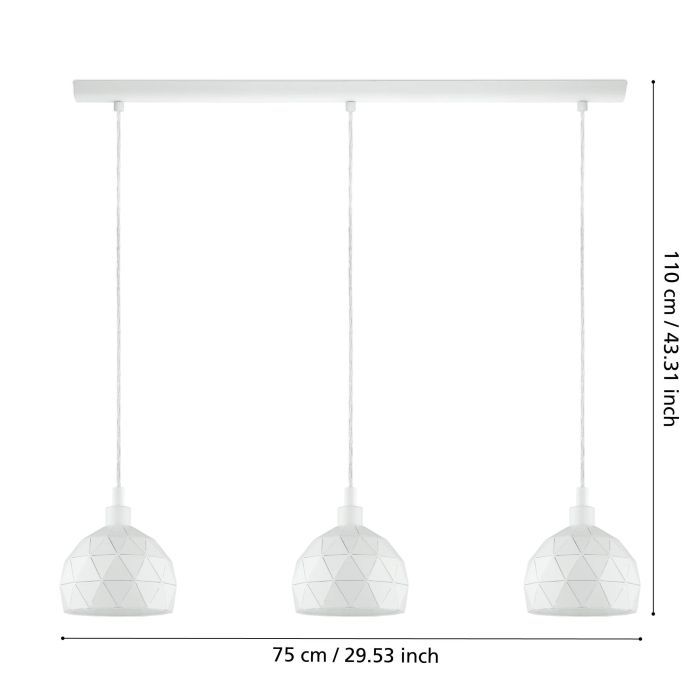 Eglo Roccaforte Κρεμαστό Φωτιστικό Μοντέρνο Τρίφωτο Ράγα Λευκό 97857