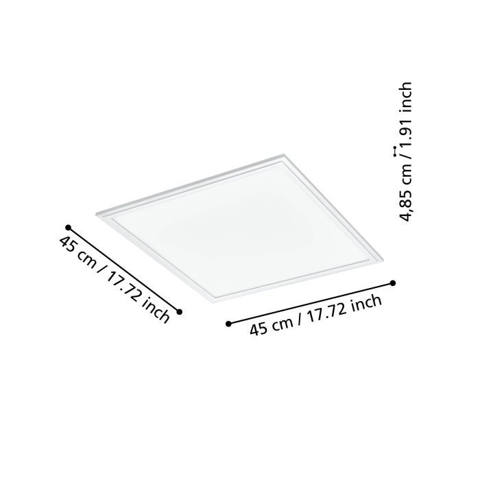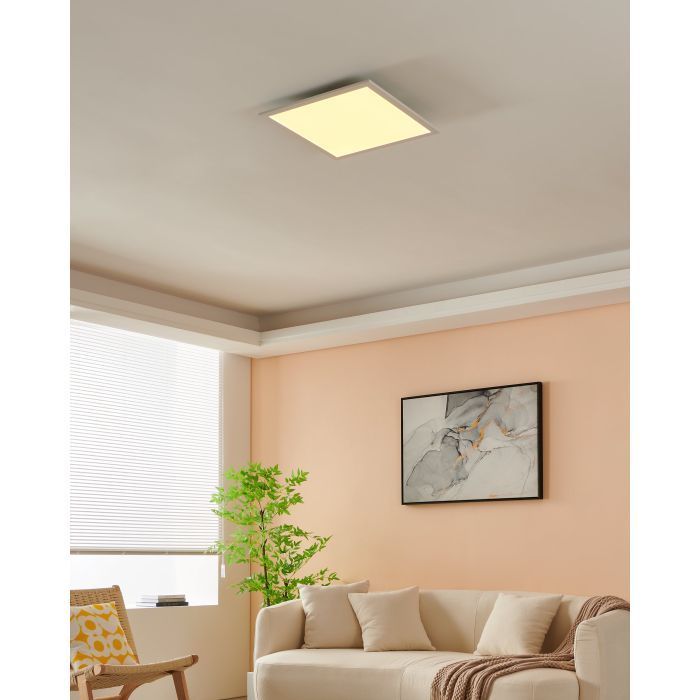 Χωνευτό LED panel της Eglo, τετράγωνο, με ισχύ 21.5W. Η απόχρωση του φωτός του ρυθμίζεται ανάμεσα σε θερμό λευκό, φυσικό λευκό και ψυχρό λευκό. Έτσι, μπορείτε να εναλλάσσετε τις διαβαθμίσεις όποτε επιθυμείτε.