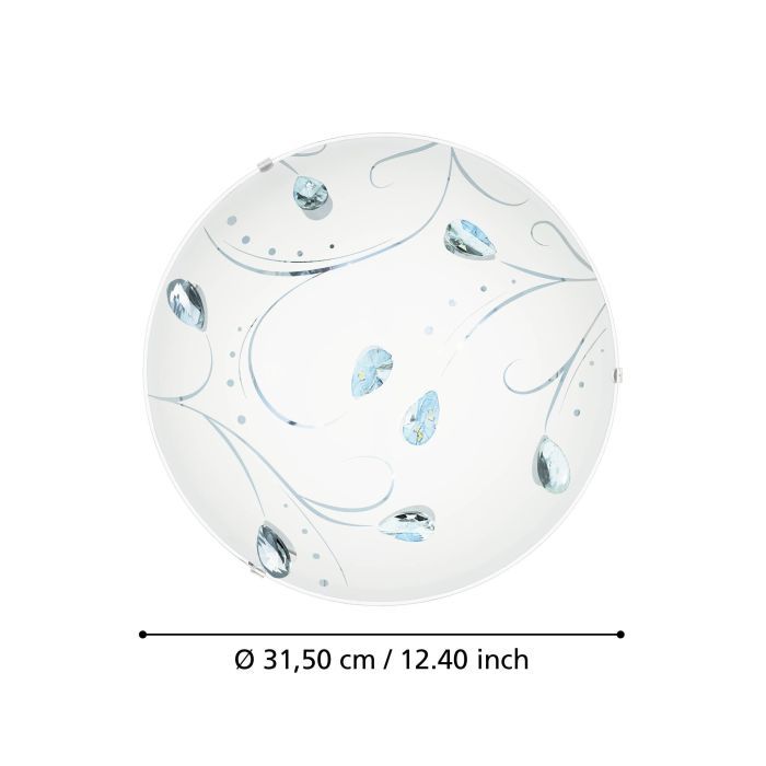 Κλασική πλαφονιέρα οροφής της Eglo σε λευκό χρώμα, από γυαλί. Διαθέτει ενσωματωμένο LED, το οποίο εκπέμπει φυσικό λευκό φως που αποδίδεται στην κλίμακα Kelvin με τιμές από 4000Κ έως 5500Κ. Οι τόνοι του φυσικού λευκού μοιάζουν με το φως της ημέρας και δεν περιέχουν άλλες αποχρώσεις.