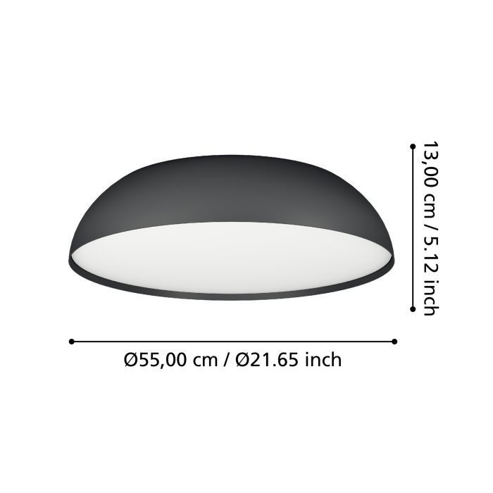 Eglo Tollos-Z Κλασική Μεταλλική Πλαφονιέρα Οροφής με Ενσωματωμένο LED σε Μαύρο χρώμα 55cm 900407
