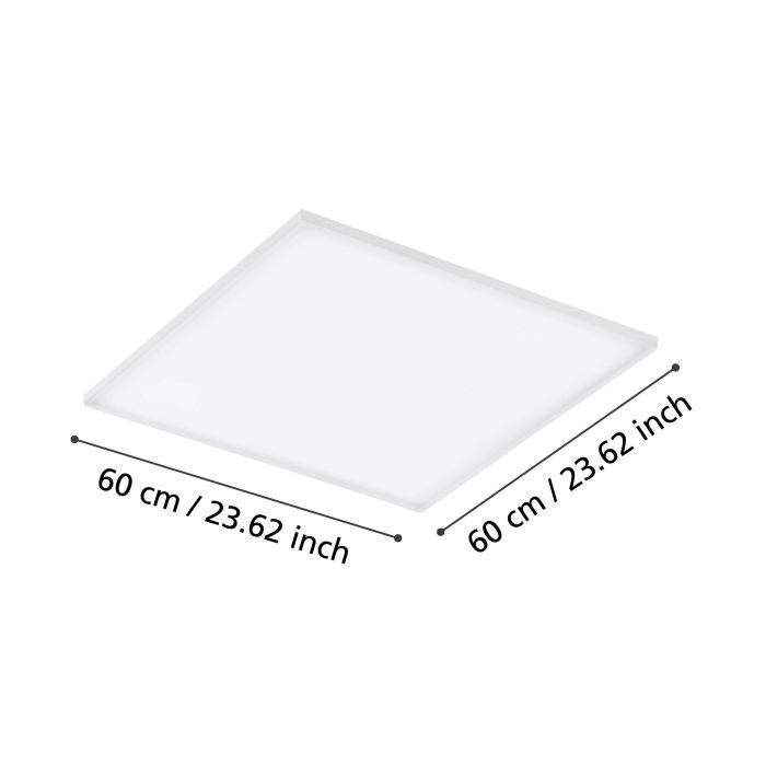 Χωνευτό LED panel της Eglo, τετράγωνο, με ισχύ 32.4W. Εκπέμπει θερμό λευκό φως, το οποίο αποδίδεται στην κλίμακα Kelvin με τιμές από 2400Κ έως 3800Κ. Οι τόνοι του θερμού λευκού είναι πιο κίτρινοι σε σχέση με το φυσικό φως.