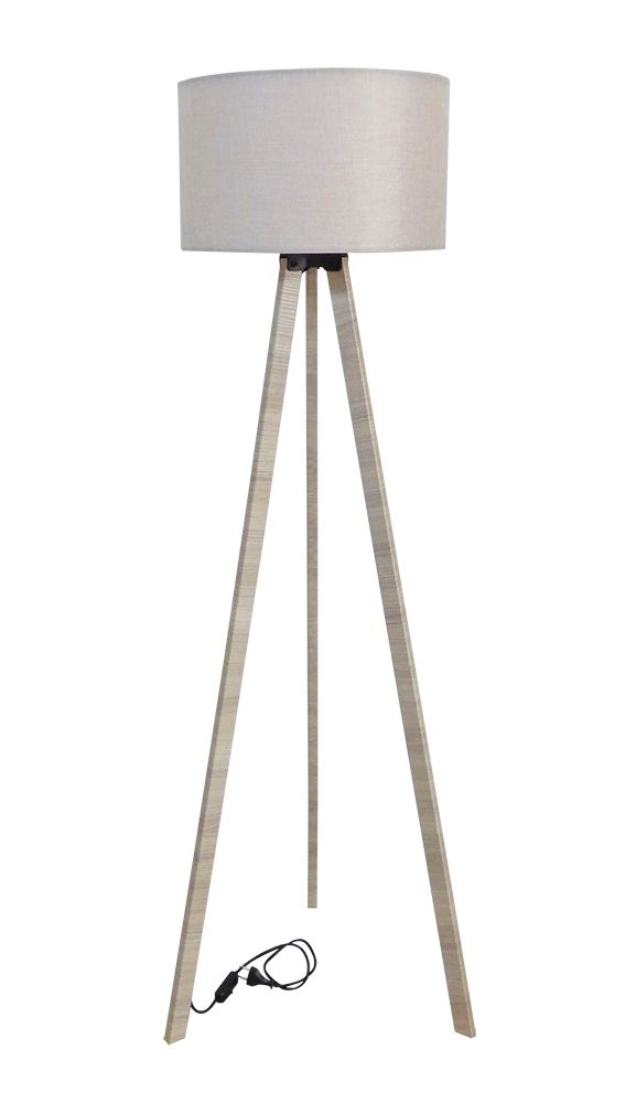Δαπέδου τρίποδο ξύλινο,ανοιχτό χρώμα με κυλινδρικό αμπαζούρ εκρού FLW-01