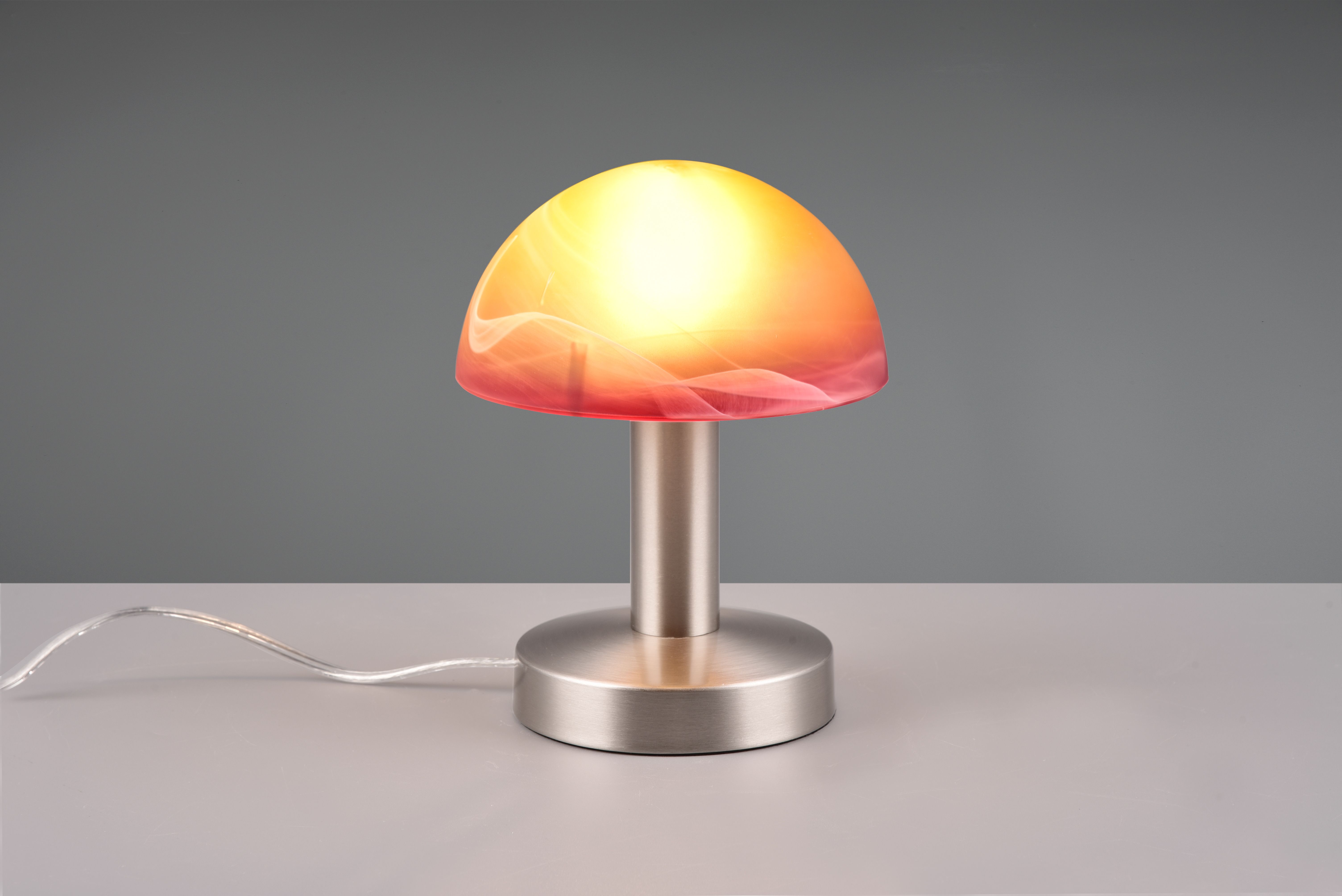 The table lamp in the FYNN II series has the shape of a classic table lamp. Its elegant colour scheme and touch function make it something special. A simple touch is enough to light up the lamp. The pleasant colouring in matt nickel with the orange glass underlines the elegant design of the light and creates a classic look. For energy-saving lighting, it is recommended to use an LED illuminant. These are an optimal alternative to conventional halogen lamps and stand for a high quality of light and energy savings of up to 80%. In addition, LED lamps help you benefit from a long service life, low heat generation and at the same time protect the environment.