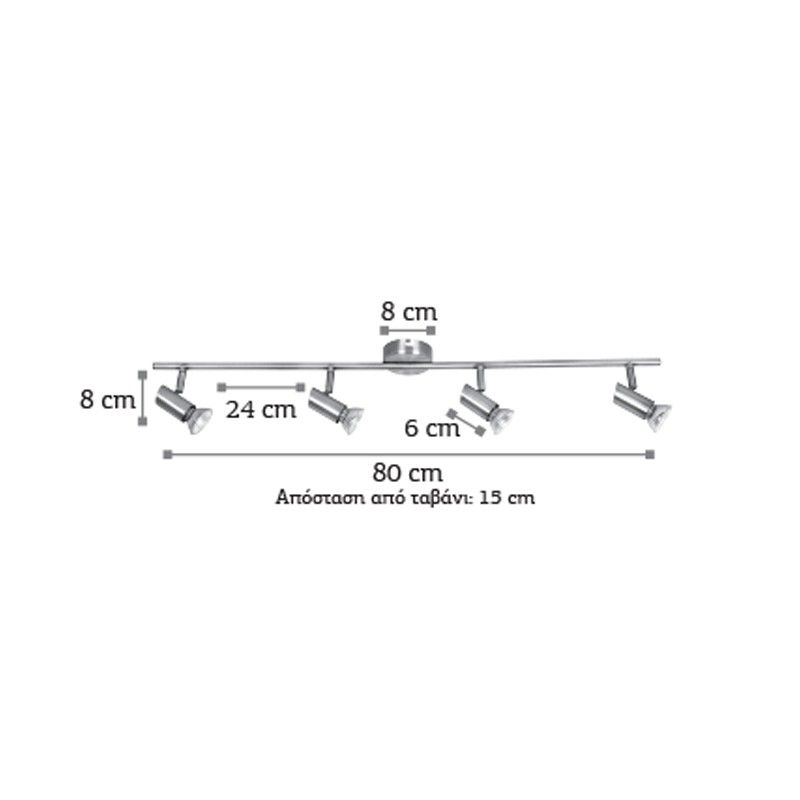 InLight Επιτοίχιο σποτ από μέταλλο σε νίκελ ματ απόχρωση 4XGU10 D:80cm 9076-4Φ-Νίκελ Ματ