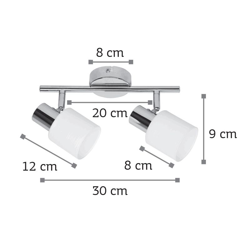 Πρόκειται για ένα επιτοίχιο μεταλλικό σποτ σε οξυντέ απόχρωση με δύο λαμπτήρες. Το λευκό γυαλί επιτρέπει στο φως να διαχέεται ομοιόμορφα στον χώρο. Το μπροστινό μέρος του κινείται προς οποιαδήποτε κατεύθυνση. Πρόκειται για ένα επιτοίχιο μεταλλικό σποτ σε οξυντέ απόχρωση με δύο λαμπτήρες. Το λευκό γυαλί επιτρέπει στο φως να διαχέεται ομοιόμορφα στον χώρο. Το μπροστινό μέρος του κινείται προς οποιαδήποτε κατεύθυνση.