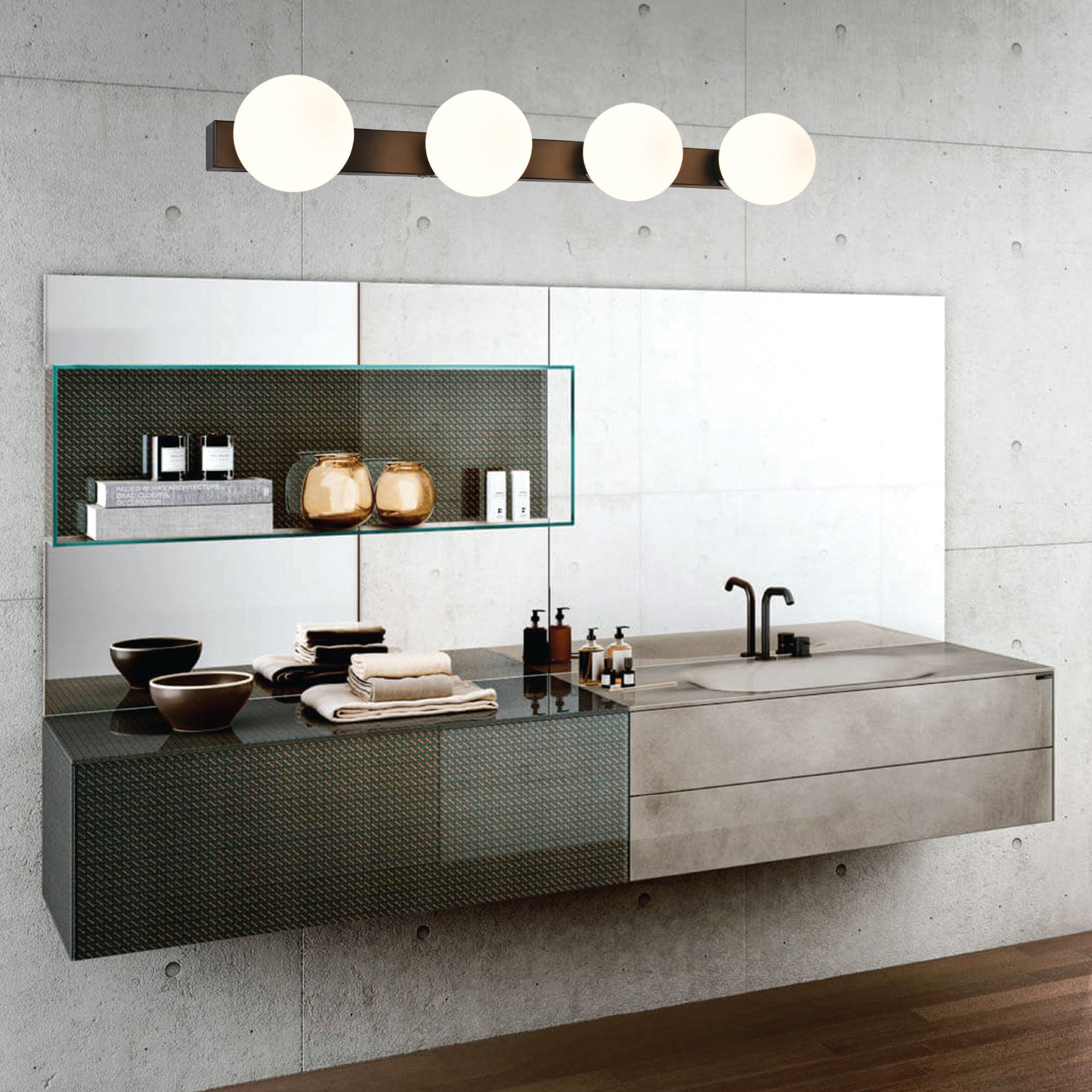 InLight Επιτοίχιο φωτιστικό από μαύρο μέταλλο και λευκή οπαλίνα 4XG9 D:61cm 43422-4