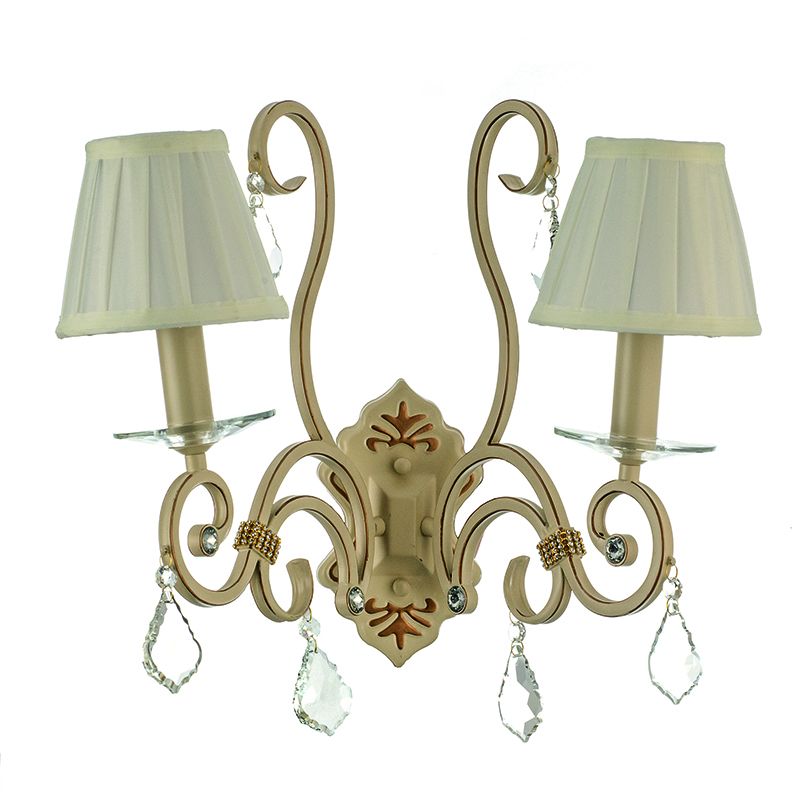 InLight Επιτοίχιο φωτιστικό από μπεζ μέταλλο κρύσταλλα και υφασμάτινο καπέλο 2XE14 D:37cm 43308-2