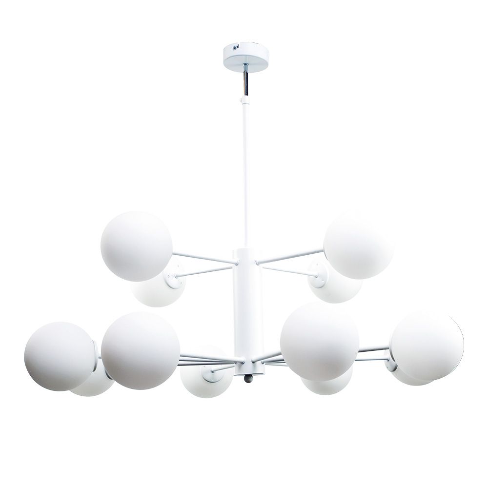 InLight Κρεμαστό φωτιστικό από λευκό μέταλλο και λευκή οπαλίνα 12XG9 D:90cm 5012-12
