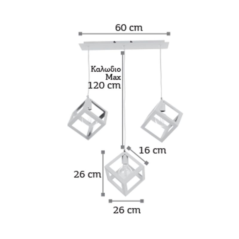 InLight Κρεμαστό φωτιστικό από λευκό μέταλλο 3XE27 D:60cm 4400-3-WH-ΡΑΓΑ