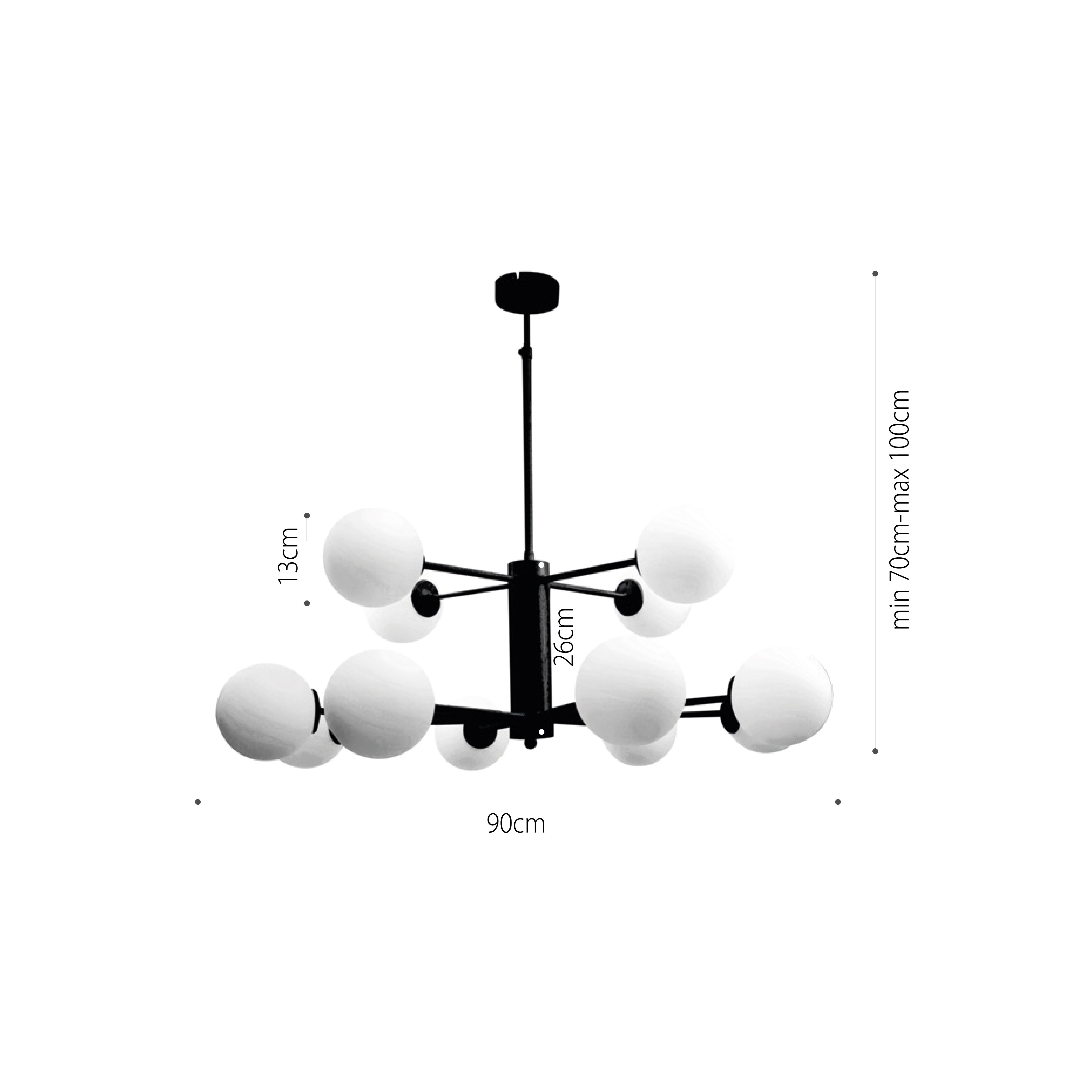 InLight Κρεμαστό φωτιστικό από μαύρο μέταλλο και λευκή οπαλίνα 12XG9 D:100cm 5315-12