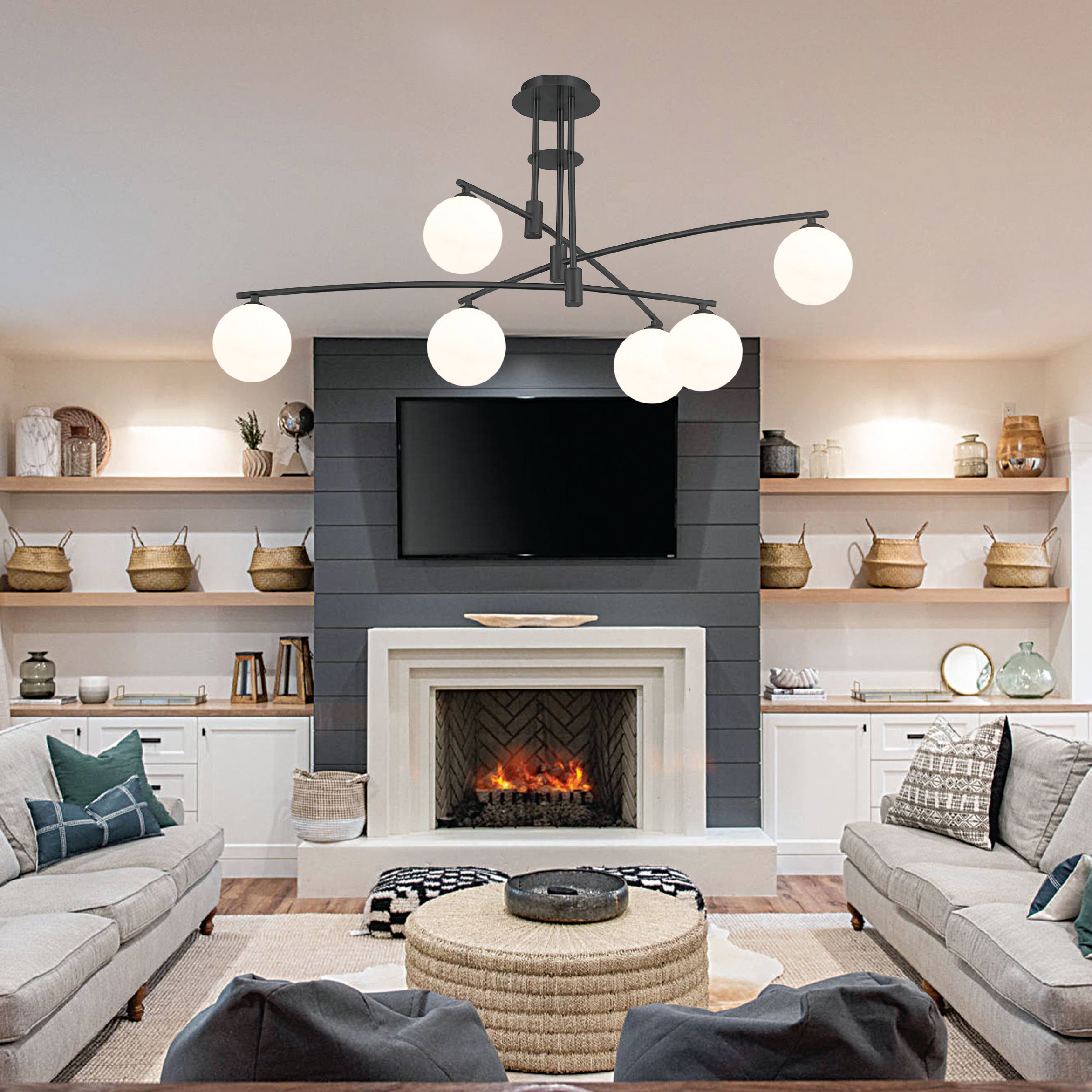 InLight Κρεμαστό φωτιστικό από μαύρο μέταλλο και λευκή οπαλίνα 6XG9 D:100cm 6036-6