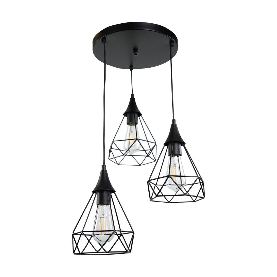 InLight Κρεμαστό φωτιστικό από μαύρο μέταλλο 3XE27 D: 30cm 4024-3-BL-ROSETTE