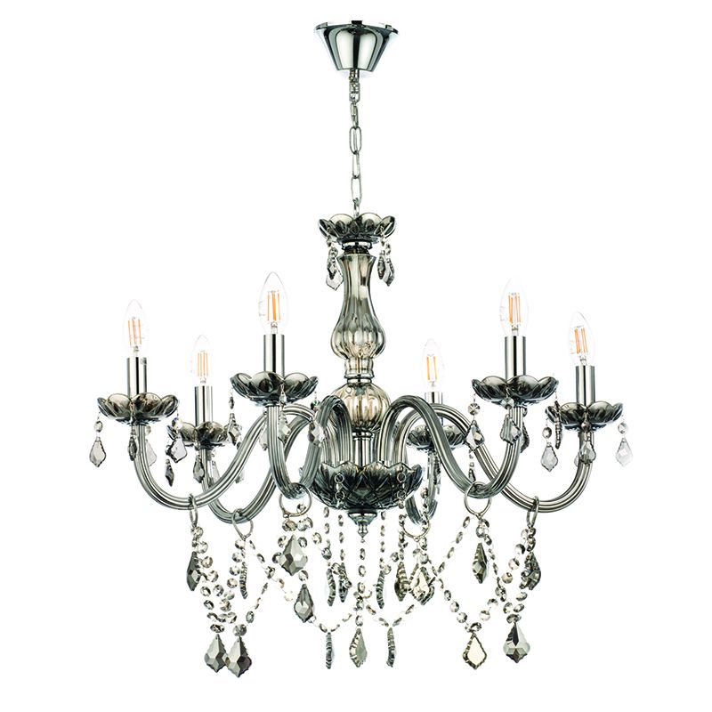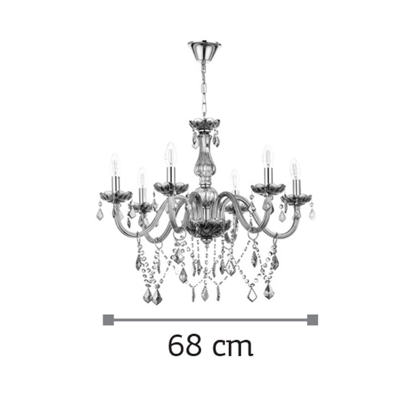 InLight Κρεμαστό φωτιστικό από φιμέ γυαλί και κρύσταλλα 6XE14 D:68cm 5314-6-FIME