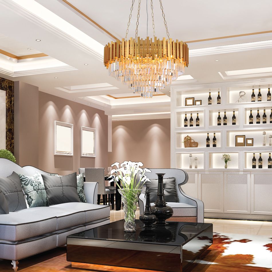 InLight Κρεμαστό φωτιστικό από χρυσαφί αλουμίνιο και κρύσταλλα 12XE14 D:80cm 6068-12