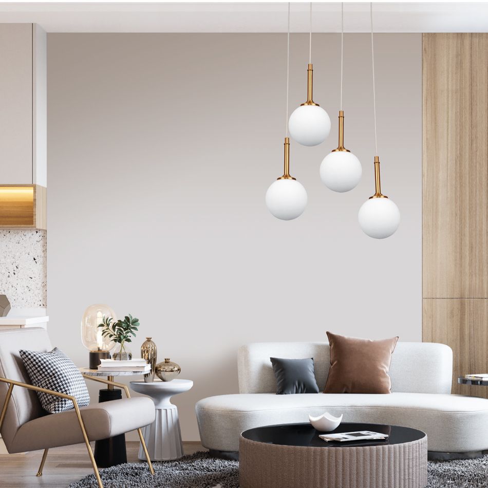 InLight Κρεμαστό φωτιστικό από χρυσαφί μέταλλο και λευκή οπαλίνα 4XG9 D:30cm 4016-4-ROSETTE