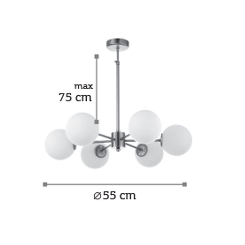 InLight Κρεμαστό φωτιστικό από χρώμιο μέταλλο και λευκή οπαλίνα 6XG9 D:55cm 5321-6