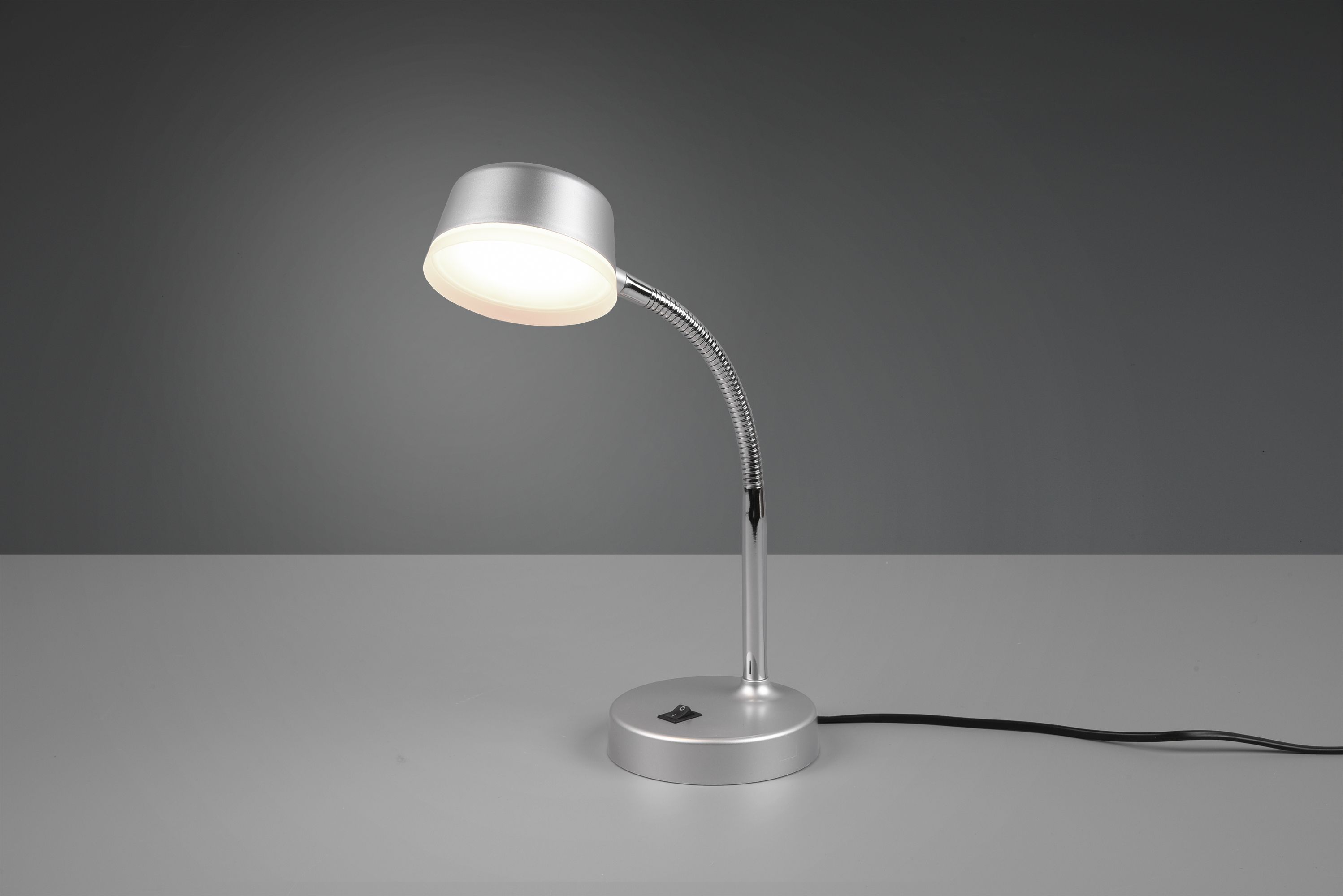 The KIKO table lamp is the perfect light source. The small table lamp is not only ideal for use on the desk, but also on the bedside table next to the bed or on the chest of drawers to create the right lighting mood. The neck can be flexibly adjusted for ideal light alignment. The switch on the base of the light makes it easy to switch on and off. The minimalist design and titanium colour scheme ensure perfect integration into existing interiors. The luminaire also features modern LED technology, which is characterised by high light quality and energy efficiency. Compared to conventional halogen light sources, up to 80% of energy costs can be saved. LED light sources also have a long service life, produce less heat and protect the environment.