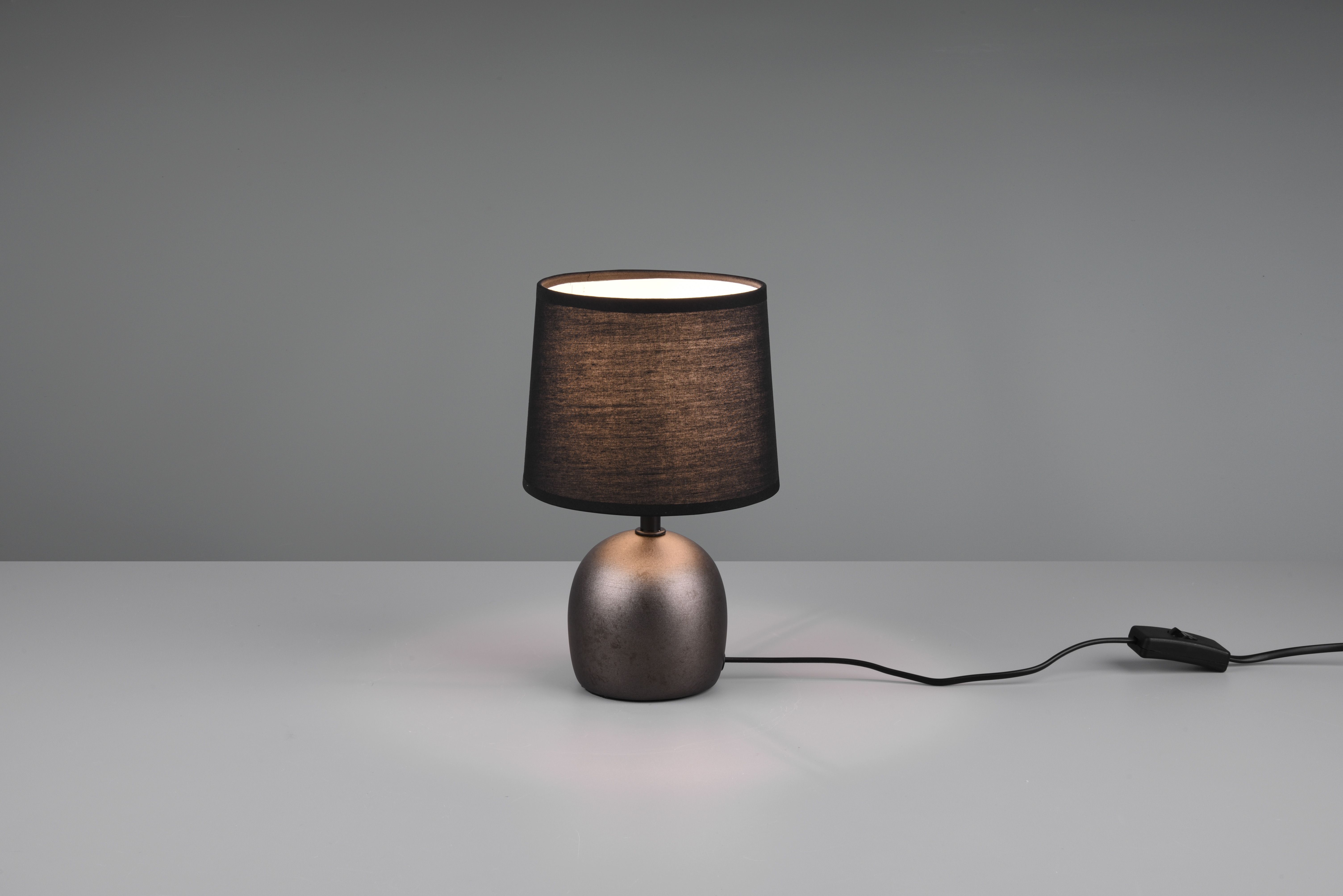 Simple eye-catcher - MALU table lamp in Scandinavian design. The indirect light from table lamps creates an atmospheric room ambience and decorative lighting accents. The modern ceramic lamp should be placed prominently in the interior, as it is a highlight when switched on and off. In antique nickel with a black fabric shade, the table lamp can be easily integrated into existing colour schemes. For energy-saving lighting, it is recommended to use an LED illuminant. These are an optimal alternative to conventional halogen lamps and stand for a high quality of light and energy savings of up to 80%. In addition, LED lamps help you benefit from a long service life, low heat generation and at the same time protect the environment.