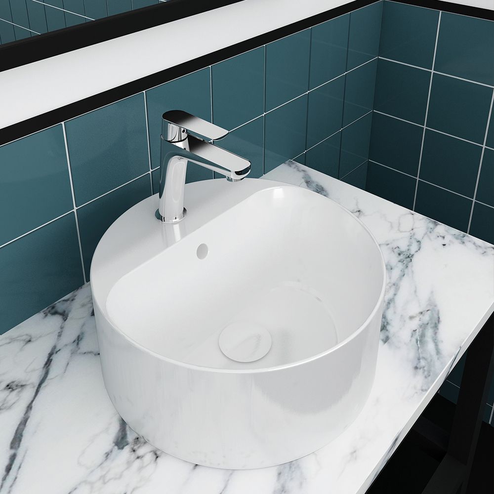 Νιπτήρας με υπερχείλιση από λευκή, γυαλιστερή πορσελάνη υψηλής ποιότητας. Διάμετρος νιπτήρα 40 εκατοστά, με ύψος νιπτήρα 17 εκατοστά. Βάθος νιπτήρα 15.5 εκατοστά.