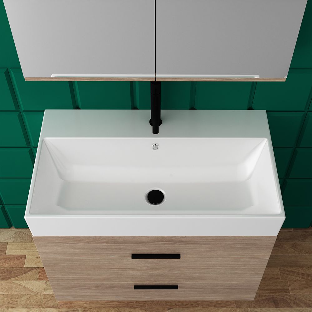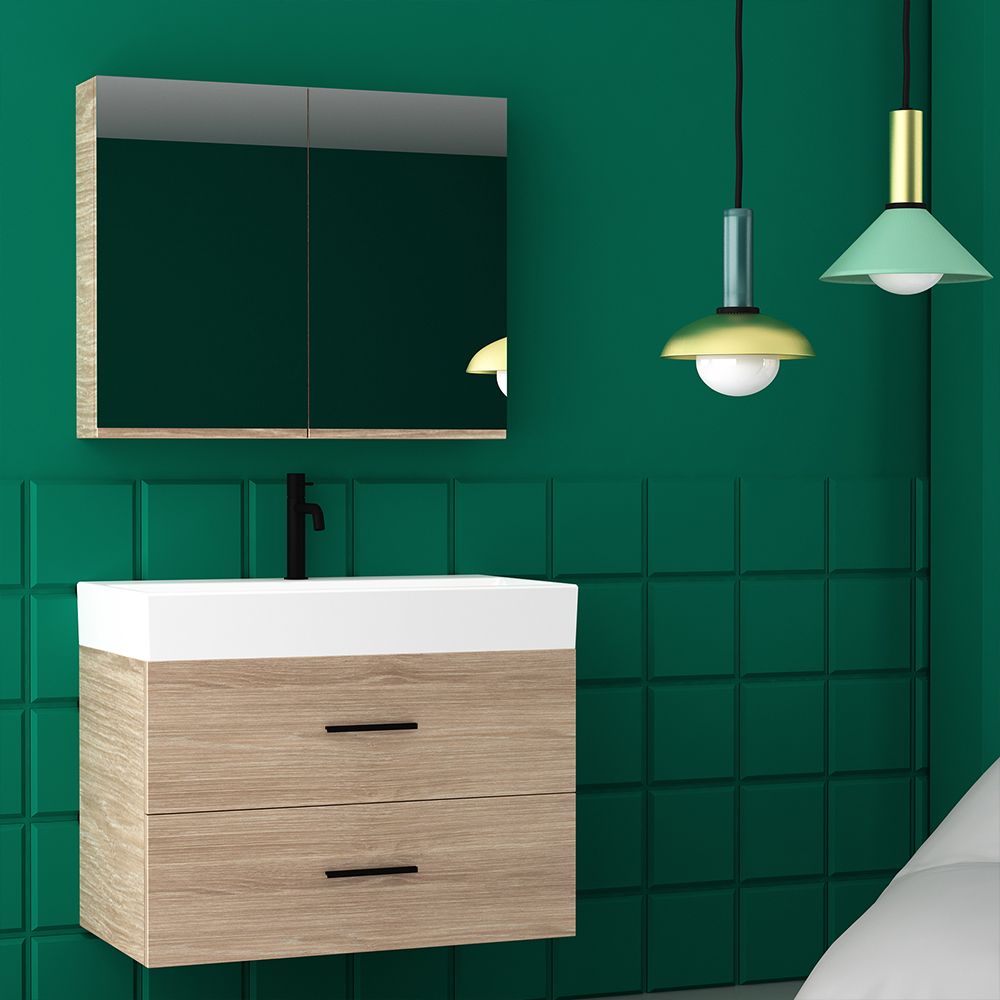 Orabella Amabile 80 με δύο Πόρτες - Κρεμαστό Έπιπλο Μπάνιου με πορσελάνινο νιπτήρα Tecla και καθρέπτη με εταζέρα και ντουλάπι F60163-70144-70111-70115-60163