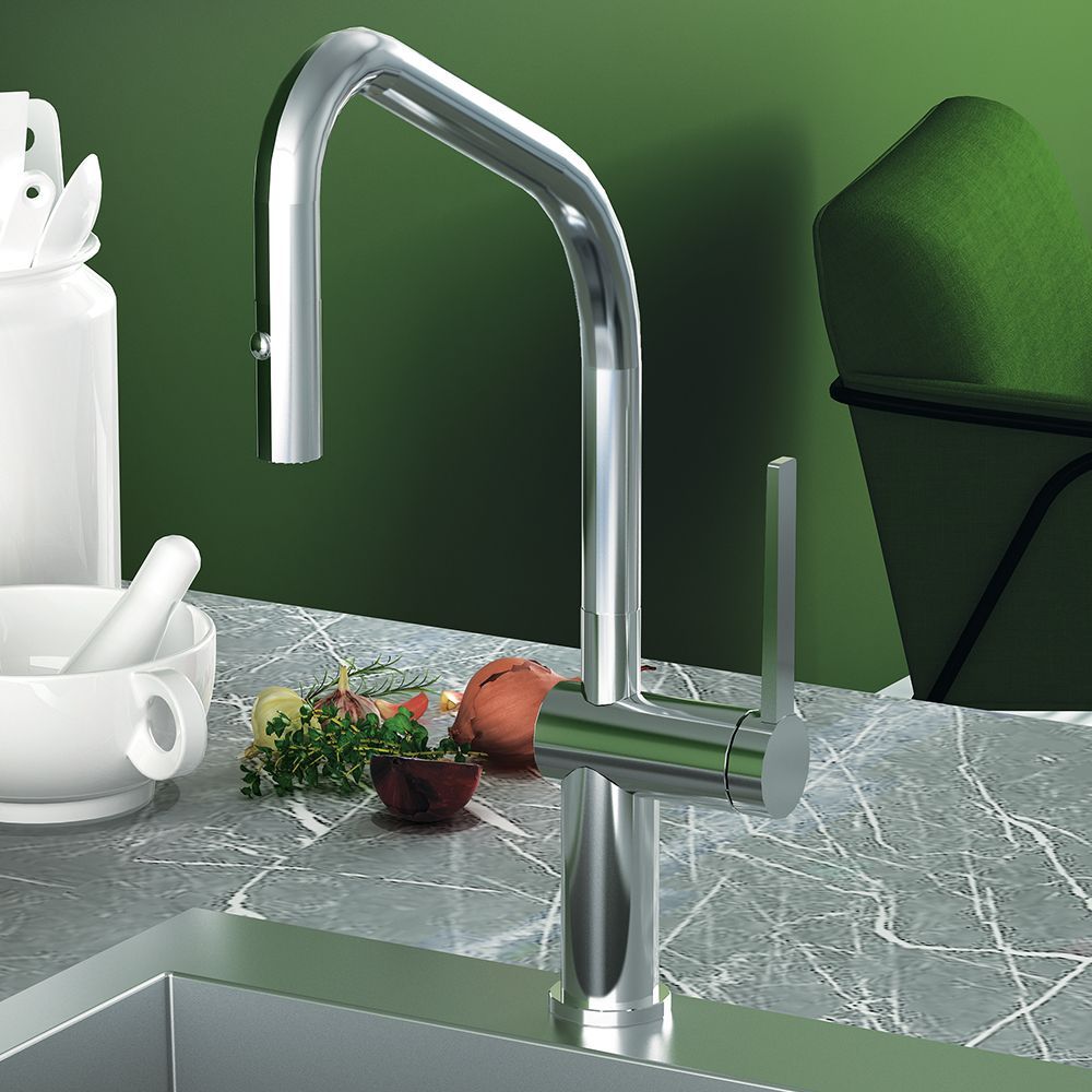 Μπαταρία νεροχύτη με περιστρεφόμενο κορμό και μεταλλικό, συρόμενο ντουζ δύο ροών. Η Vento φέρει την υπογραφή της εταιρείας Armando Vicario και χαρακτηρίζεται από εργονομικό design υψηλών σχεδιαστικών προδιαγραφών και κορυφαία κατασκευαστική ποιότητα, που προσφέρει μεγάλη ευκολία στη χρήση.