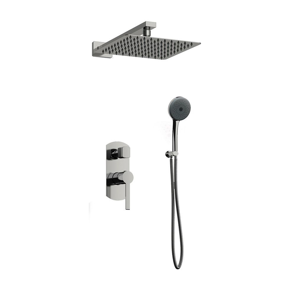 Μπαταρία λουτρού, εντοιχισμού, 2-σημείων χρωμέ με άριστη ποιότητα επινικέλωσης 5 στρωμάτων, που εγγυάται ευκολία στο καθάρισμα και λάμψη για πολλά χρόνια χρήσης και μπαταρία λουτρού σε μαύρο ματ φινίρισμα. Τετράγωνος επιτοίχιος βραχίονας κεφαλής ντουζ 35 εκ., με τετράωνη ροζέτα που κατασκευάζεται από υψηλής ποιότητας ορείχαλκο και κεφαλή ντουζ τετράγωνη από ανοξείδωτο ατσάλι. Συνοδεύονται από επιτοίχια παροχή με στήριγμα τηλεφώνου από ορείχαλκο και μοντέρνο τηλέφωνο ντουζ με στρόγγυλη κεφαλή 3-θέσεων σετ με εύκαμπτο χρωμέ, ορειχάλκινο σπιράλ.