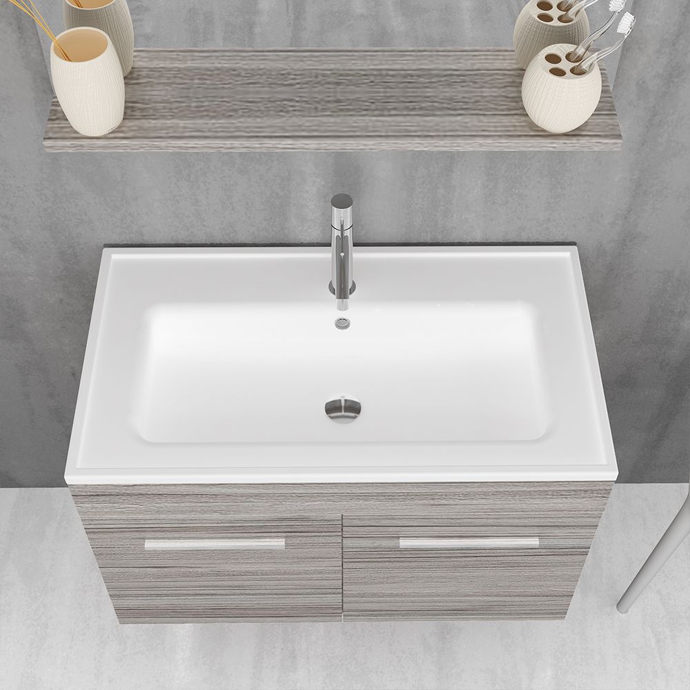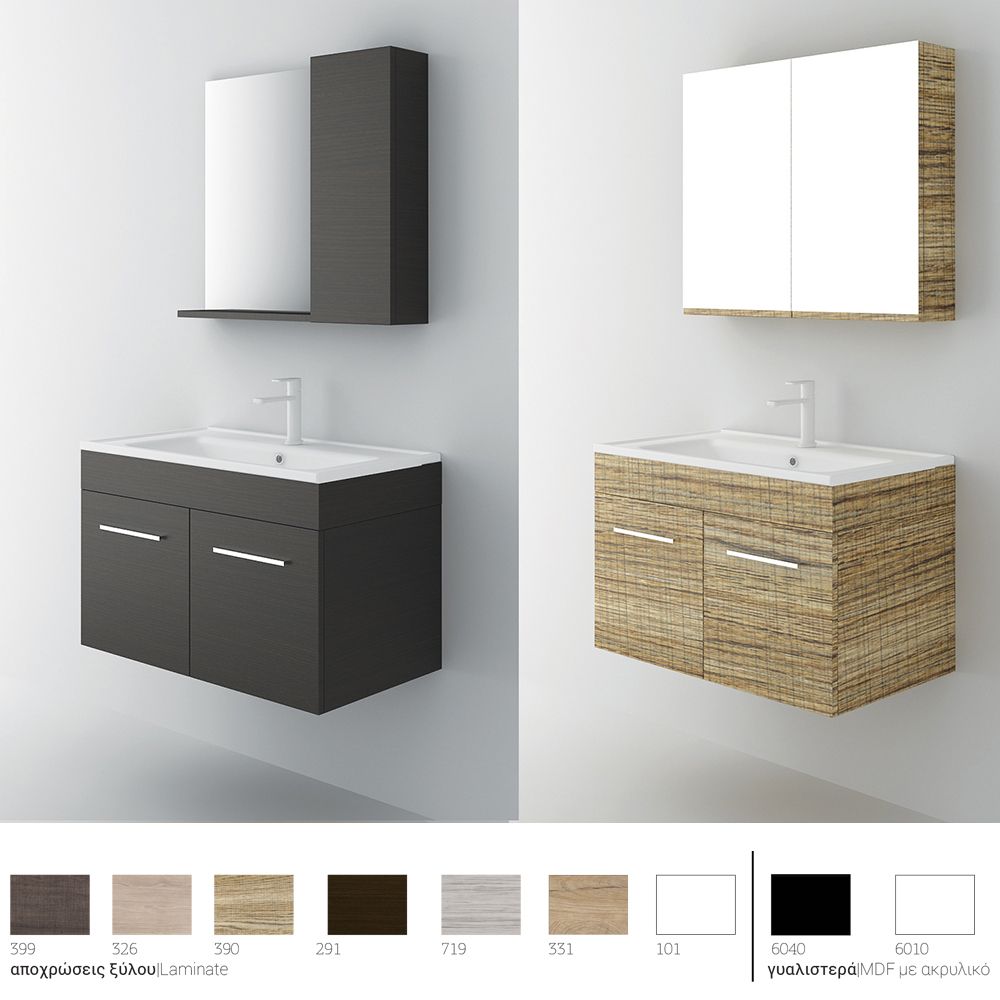 Κρεμαστό έπιπλο μπάνιου Lagina 80 – σειρά επίπλων Alternative. Ένα έπιπλο μπάνιου, βαρέως τύπου ιδανικό για οικιακή χρήση. Αποτελείται από, κρεμαστή βάση με δύο πόρτες με μηχανισμούς κλεισίματος soft close και νιπτήρα από πορσελάνη. Μπορείτε να ολοκληρώσετε την εικόνα του επίπλου προσθέτοντας καθρέπτη δικής σας επιλογής (ντουλάπι, εταζέρα με ντουλαπάκια ή καθρέπτη με πλαίσιο) και τα πόμολα που ταιριάζουν στο δικό σας μπάνιο. Όλα τα έπιπλα της εταιρείας Orabella μπορούν να πάρουν στήλες μπάνιου επιδαπέδιες ή κρεμαστές για επιπλέον χώρο αποθήκευσης, ενώ υπάρχει δυνατότητα προσθήκης ντουλαπιού πλυντηρίου σε χρώμα δικής σας επιλογής. Διατίθεται σε έξι διαφορετικές αποχρώσεις ξύλου και σε λευκό χρώμα- Laminate καθώς και σε μαύρο και λευκό γυαλιστερό και ματ ακρυλικό σε mdf. Κατόπιν επιλογής, μπορεί να συνοδευτεί με γραμμικό φωτιστικό μπάνιου Led.