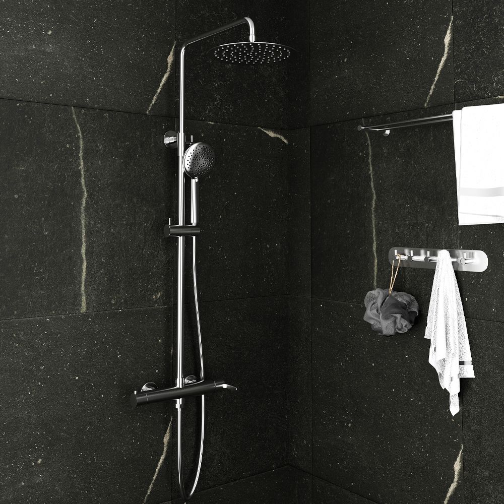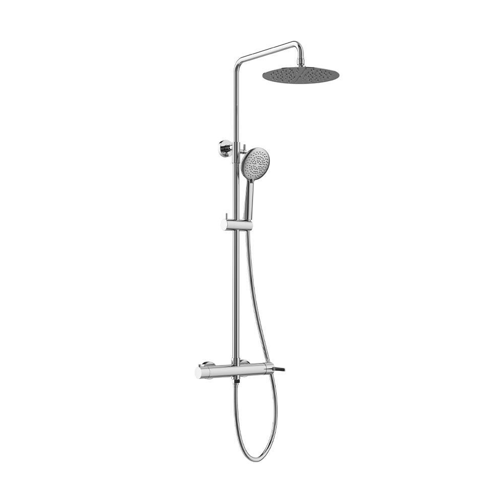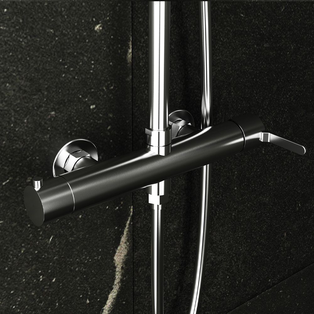 Στήλη ντουζ Marea Column, ρυθμιζόμενου ύψους (81-118 cm) με κεφαλή από ανοξείδωτο ατσάλι, με ορειχάλκινη μπίλια Φ250. Ο διανομέας είναι κατασκευασμένος εξ ολοκλήρου από υψηλής ποιότητας ορείχαλκο. Συμπεριλαμβάνεται στήριγμά στον τοίχο ABS, τηλέφωνο 5-λειτουργιών και λείο σπιράλ τηλεφώνου (PVC) μήκους 150 εκατοστών. Διατίθεται σε τέσσερα διαφορετικά χρώματα: χρωμέ, μαύρο ματ, ροζ χρυσό, και gun metal.