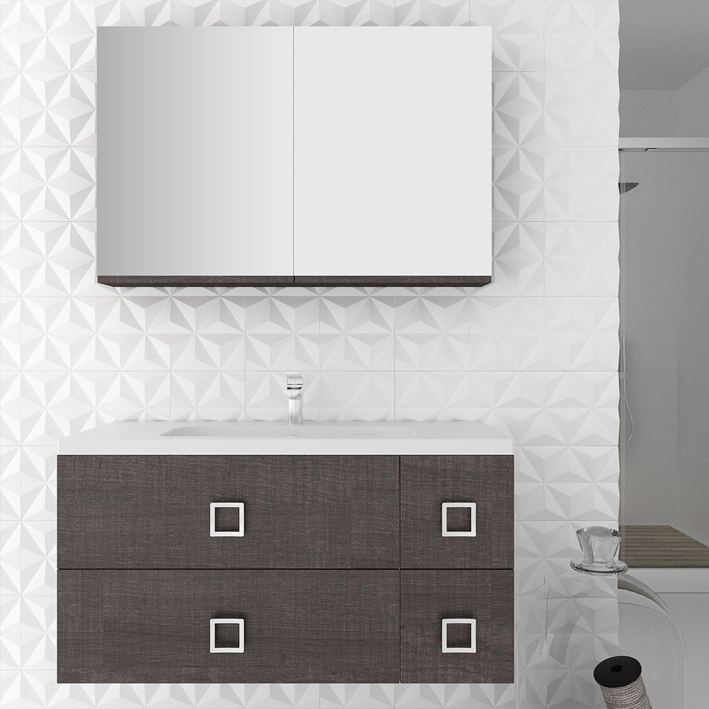 Orabella Mood 100 με τέσσερα Συρτάρια - Κρεμαστό Έπιπλο Μπάνιου με πορσελάνινο νιπτήρα Tecla και καθρέπτη ντουλάπ F60161-70141-70107-60161