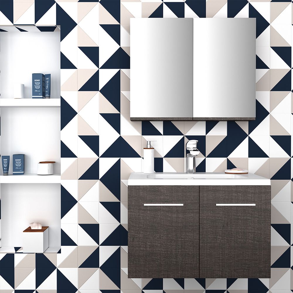 Orabella Mood 80 με δύο Πόρτες - Κρεμαστό Έπιπλο Μπάνιου με πορσελάνινο νιπτήρα Tecla και καθρέπτη ντουλάπι F60160-70136-70105-60160