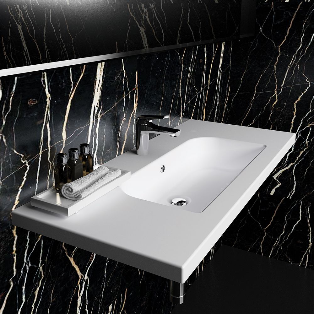 Υλικό επίπλου μελαμίνη με PVC για μεγαλύτερη αντοχή στο χρόνο και σε μεγάλη γκάμα χρωματικών επιλογών. Χρήση μηχανισμών κλεισίματος soft close και blumotion (σε συρτάρια) που φέρουν την υπογραφή της κορυφαίας εταιρείας BLUM. Διατίθεται με ντουλάπι καθρέπτη με δύο πόρτες ή καθρέπτη με εταζέρα που μπορεί να πλαισιωθεί από δύο πρόσθετα ντουλάπια 20 εκατοστών. Ο καθρέπτης Infinity αποτελεί μια τρίτη επιλογή χωρίς αποθηκευτικό χώρο. Ο τελευταίος βγαίνει μόνο σε αποχρώσεις ξύλου Laminate. Συμπεριλαμβάνονται στη βάση δύο χρωμέ λαβές επίπλων, δικής σας επιλογής σε τρία σχέδια, ανάλογα με τη μορφολογία της βάσης. Ενώ υπάρχει δυνατότητα προσθήκης στο πακέτο μαύρων ματ γραμμικών λαβών κατόπιν επιλογής. Στην περίπτωση δύο συρταριών μπορείτε να επιλέξετε ανάμεσα στα πόμολα Μ1, Μ4 ή Μ5 ή σε μαύρο πόμολο M1. Σε βάση με δύο πόρτες μπορεί να τοποθετηθούν πόμολα χρωμέ, γραμμικά, L1, L2 ή L3 ή μαύρο ματ L1. Ομοίως μπορείτε να συνδυάσετε φωτιστικό επίπλου σε χρωμέ ή μαύρη απόχρωση. Η συνολική σύνθεση του επίπλου αποστέλλεται συναρμολογημένη σε 3 τεμάχια (βάση, νιπτήρας και καθρέφτη) και σε περίπτωση που επιλέξετε στήλες μπάνιου για να αυξήσετε τους αποθηκευτικούς χώρους στο μπάνιο σας, αυτές παραδίδονται συναρμολογημένες. Κατόπιν επιλογής, η σύνθεση μπορεί να συνοδευτεί με γραμμικό φωτιστικό μπάνιου Led 40 ή 60 εκατοστά ισχύος 8 και 12 watt αντιστοίχως, σε χρωμέ ή και μαύρο ματ χρώμα. Στην τιμή του νιπτήρα δεν συμπεριλαμβάνεται η μπαταρία και η βαλβίδα του νιπτήρα, μπορείτε να προσθέσετε ορειχάλκινη, βαλβίδα κλικ-κλακ για νιπτήρες με υπερχείλιση. Ομοίως μπορείτε να προσθέσετε μπαταρία νιπτήρος που φέρει την υπογραφή κορυφαίων εταιρειών στο σχεδιασμό ειδών υγιεινής, όπως Pentagono, Orabella by Armando Vicario και Orabella.