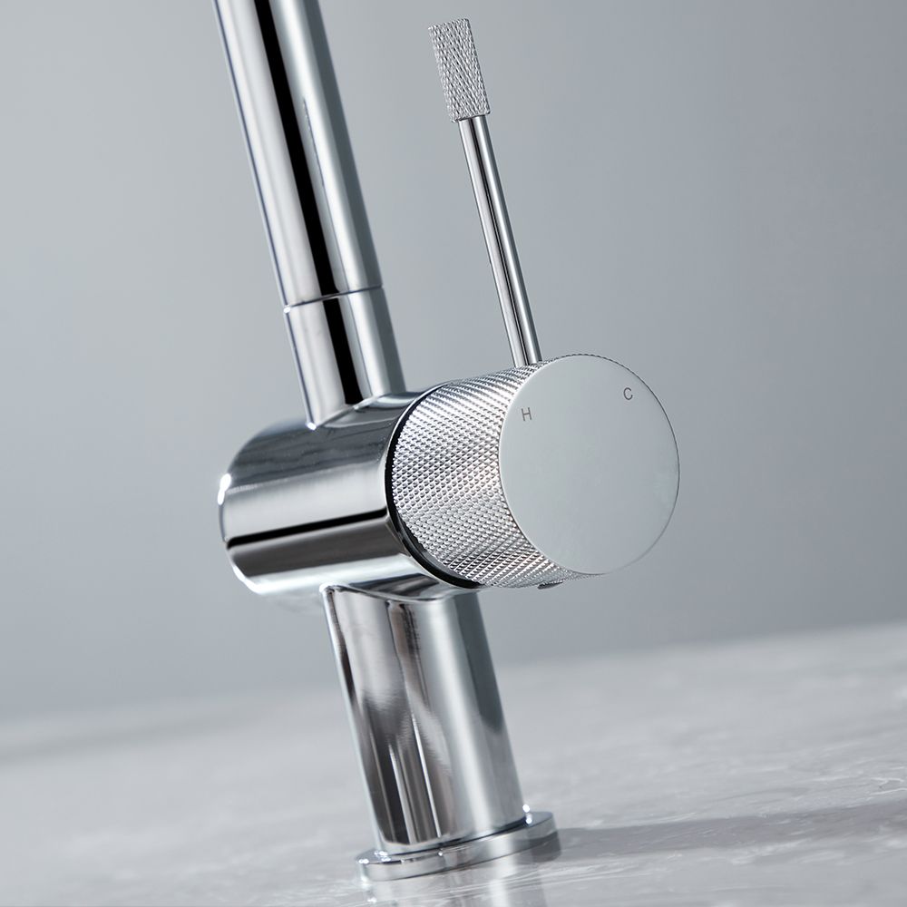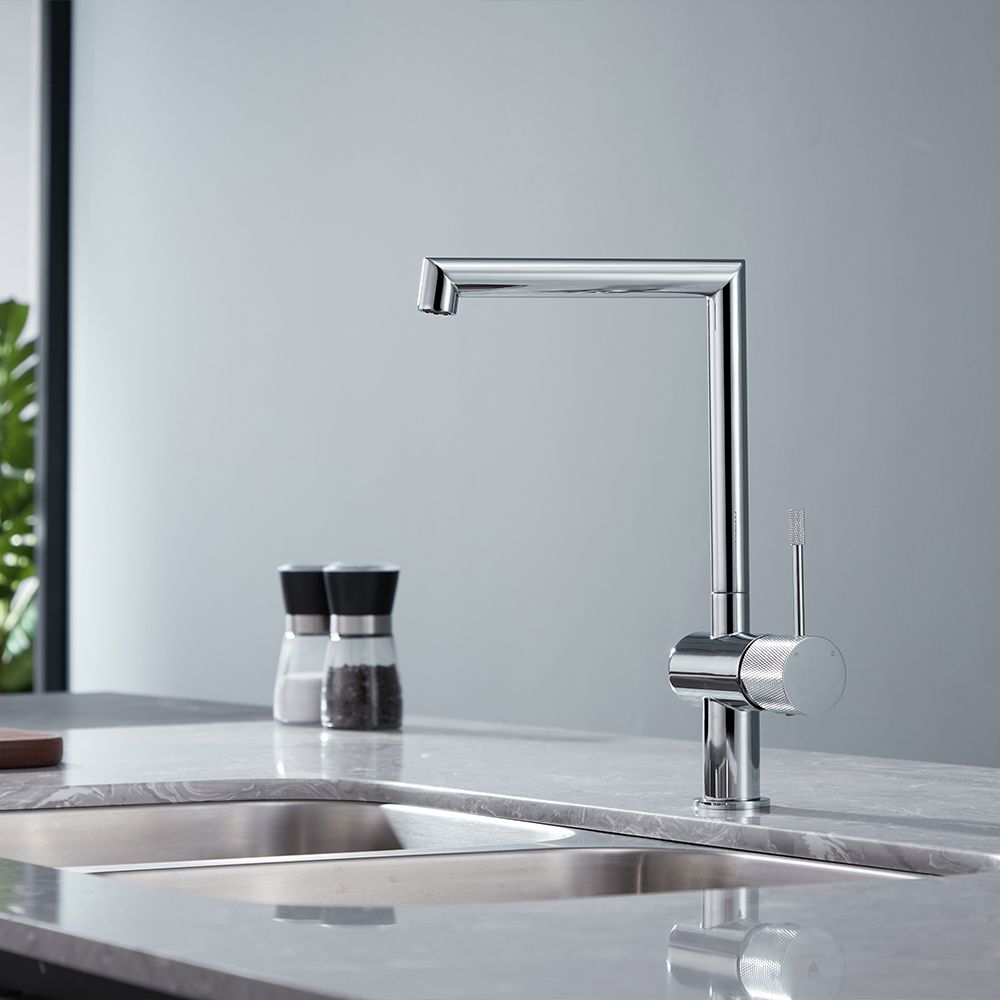 Μπαταρία κουζίνας Orabella, Siena με περιστρεφόμενο κορμό. Πρόκειται για μια μοντέρνα μπαταρία πάγκου, η οποία είναι κατασκευασμένη από τον οίκο Orabella, από υψηλής ποιότητας ορείχαλκο. Διατίθεται σε δύο χρωματικές επιλογές: χρωμέ και μαύρο ματ.