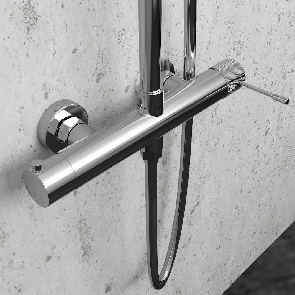 Στήλη ντουζ Terra Column, ρυθμιζόμενου ύψους (81-118 cm) με κεφαλή από ανοξείδωτο ατσάλι, με ορειχάλκινη μπίλια Φ250. Ο διανομέας είναι κατασκευασμένος εξ ολοκλήρου από υψηλής ποιότητας ορείχαλκο. Συμπεριλαμβάνεται στήριγμά στον τοίχο ABS, τηλέφωνο 5-λειτουργιών και λείο σπιράλ τηλεφώνου (PVC) μήκους 150 εκατοστών. Διατίθεται σε έξι διαφορετικά χρώματα: χρωμέ, μαύρο ματ, χρυσό σατινέ, ροζ χρυσό, brushed nickel και gun metal.