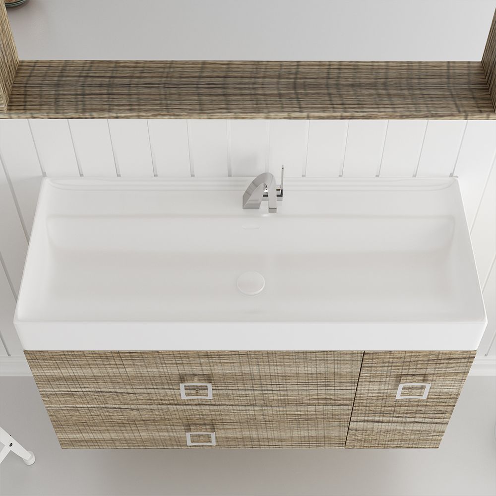 Κρεμαστό έπιπλο μπάνιου Touch 101 – σειρά επίπλων Minimal. Ένα έπιπλο μπάνιου, βαρέως τύπου ιδανικό για οικιακή χρήση. Αποτελείται από, κρεμαστή βάση με δύο πόρτες ή δύο πόρτες και δύο συρτάρια ή τέσσερα συρτάρια ή μια πόρτα και δύο συρτάρια, με μηχανισμούς κλεισίματος soft close και νιπτήρα από πορσελάνη. Μπορείτε να ολοκληρώσετε την εικόνα του επίπλου προσθέτοντας καθρέπτη δικής σας επιλογής (ντουλάπι, εταζέρα με ντουλαπάκια ή καθρέπτη με πλαίσιο) και τα πόμολα που ταιριάζουν στο δικό σας μπάνιο. Όλα τα έπιπλα της εταιρείας Orabella μπορούν να πάρουν στήλες μπάνιου επιδαπέδιες ή κρεμαστές για επιπλέον χώρο αποθήκευσης, ενώ υπάρχει δυνατότητα προσθήκης ντουλαπιού πλυντηρίου σε χρώμα δικής σας επιλογής. Διατίθεται σε έξι διαφορετικές αποχρώσεις ξύλου και σε λευκό χρώμα-Laminate καθώς και σε μαύρο και λευκό γυαλιστερό και ματ ακρυλικό σε mdf. Κατόπιν επιλογής, μπορεί να συνοδευτεί με γραμμικό φωτιστικό μπάνιου Led.