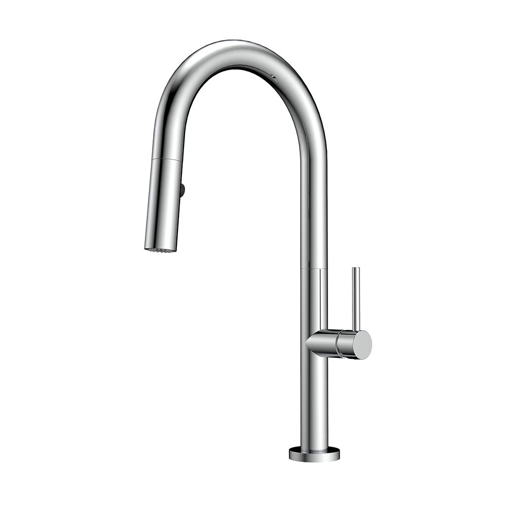 Μπαταρία κουζίνας Orabella, Vertigo με αποσπώμενο, συρόμενο ντουζ δύο ροών με δύο λειτουργίες shower και spray. Πρόκειται για μια μοντέρνα μπαταρία πάγκου, η οποία είναι κατασκευασμένη από τον οίκο Orabella, από υψηλής ποιότητας ορείχαλκο. Διατίθεται σε δύο χρωματικές επιλογές: χρωμέ και μαύρο ματ.