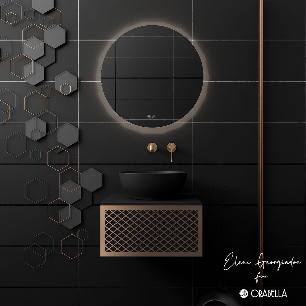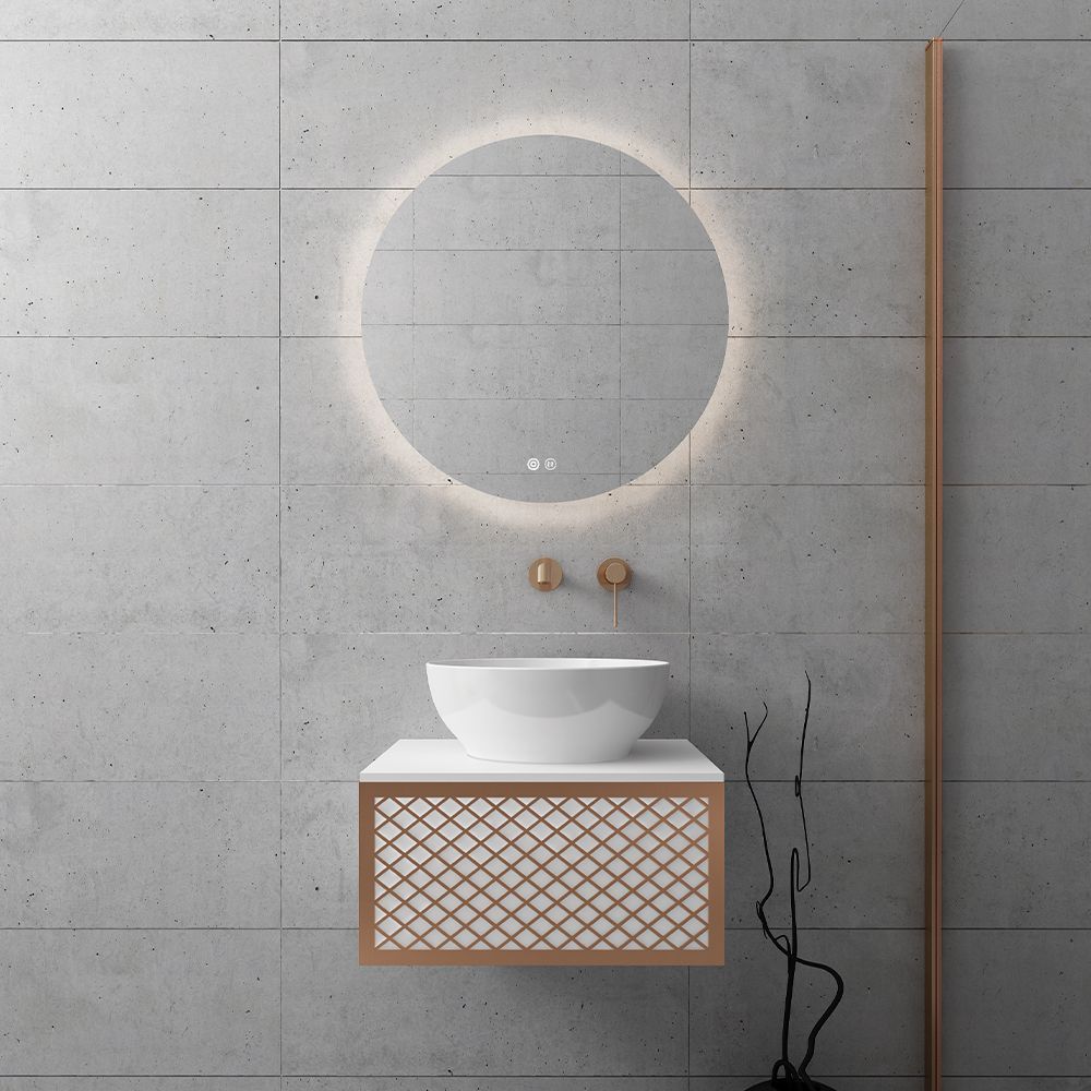 Υλικό επίπλου MDF super matt, anti-spot, για μεγαλύτερη αντοχή στο χρόνο. Ανακλινόμενο πορτάκι με χρωμέ κουμπάσο, δύο μεντεσέδες (χρωμέ ή μαύροι ανάλογα με το χρώμα της βάσης) και μηχανισμό ανοίγματος push. Ο πάγκος κατασκευάζεται από υλικά ματ υψηλής αντοχής στην κρούση, στην κάμψη και στην τριβή με σχεδόν μηδενική απορρόφηση υγρασίας. Προτείνεται η επιλογή καθρέπτη LED με κρυφό φωτισμό και 2 κουμπιά με αισθητήρες αφής on/off και anti-fog αντιθαμβωτικό σύστημα με δυνατότητα επιλογής θερμοκρασίας χρώματος φωτός. Στην τιμή δεν συμπεριλαμβάνεται ο νιπτήρας, η μπαταρία και η βαλβίδα του νιπτήρα. Mπορείτε να προσθέσετε επικαθήμενο νιπτήρα και ορειχάλκινη βαλβίδα κλικ-κλακ για νιπτήρες χωρίς υπερχείλιση. Ομοίως μπορείτε να προσθέσετε μπαταρία νιπτήρος που φέρει την υπογραφή κορυφαίων εταιρειών στον σχεδιασμό ειδών υγιεινής, όπως Pentagono, Orabella by Armando Vicario και Orabella. Προσοχή: οι επικαλύψεις παραδίδονται ατρύπητες.
