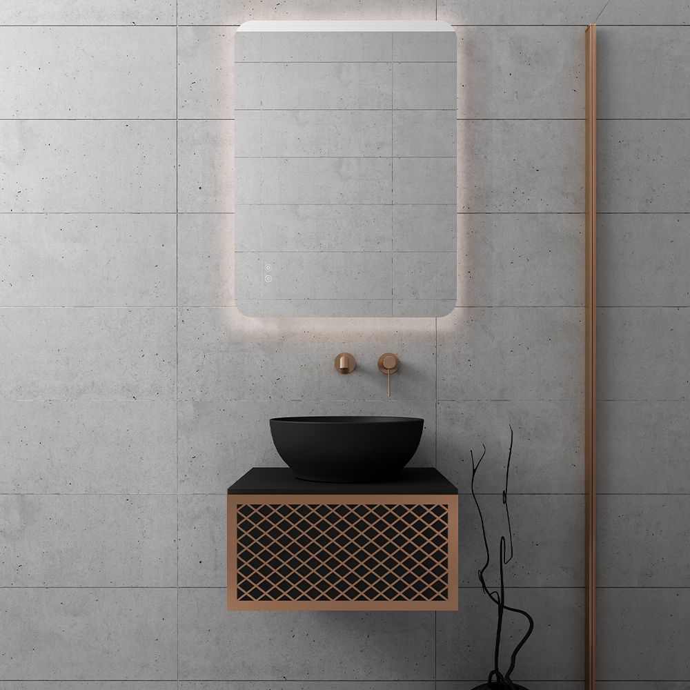Orabella Wire 50 Μαύρο/ Ροζ Χρυσό Προφίλ - Κρεμαστό Έπιπλο Μπάνιου για επικαθήμενο νιπτήρα με διπλό αποθηκευτικό χώρο F70173-70182