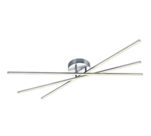Μοντέρνα πλαφονιέρα οροφής της Trio Lighting σε ασημί χρώμα, από μέταλλο. Διαθέτει ενσωματωμένο LED, το οποίο εκπέμπει θερμό λευκό φως που αποδίδεται στην κλίμακα Kelvin με τιμές από 2400Κ έως 3800Κ. Αυτοί οι τόνοι του λευκού είναι πιο κίτρινοι σε σχέση με το φυσικό φως.