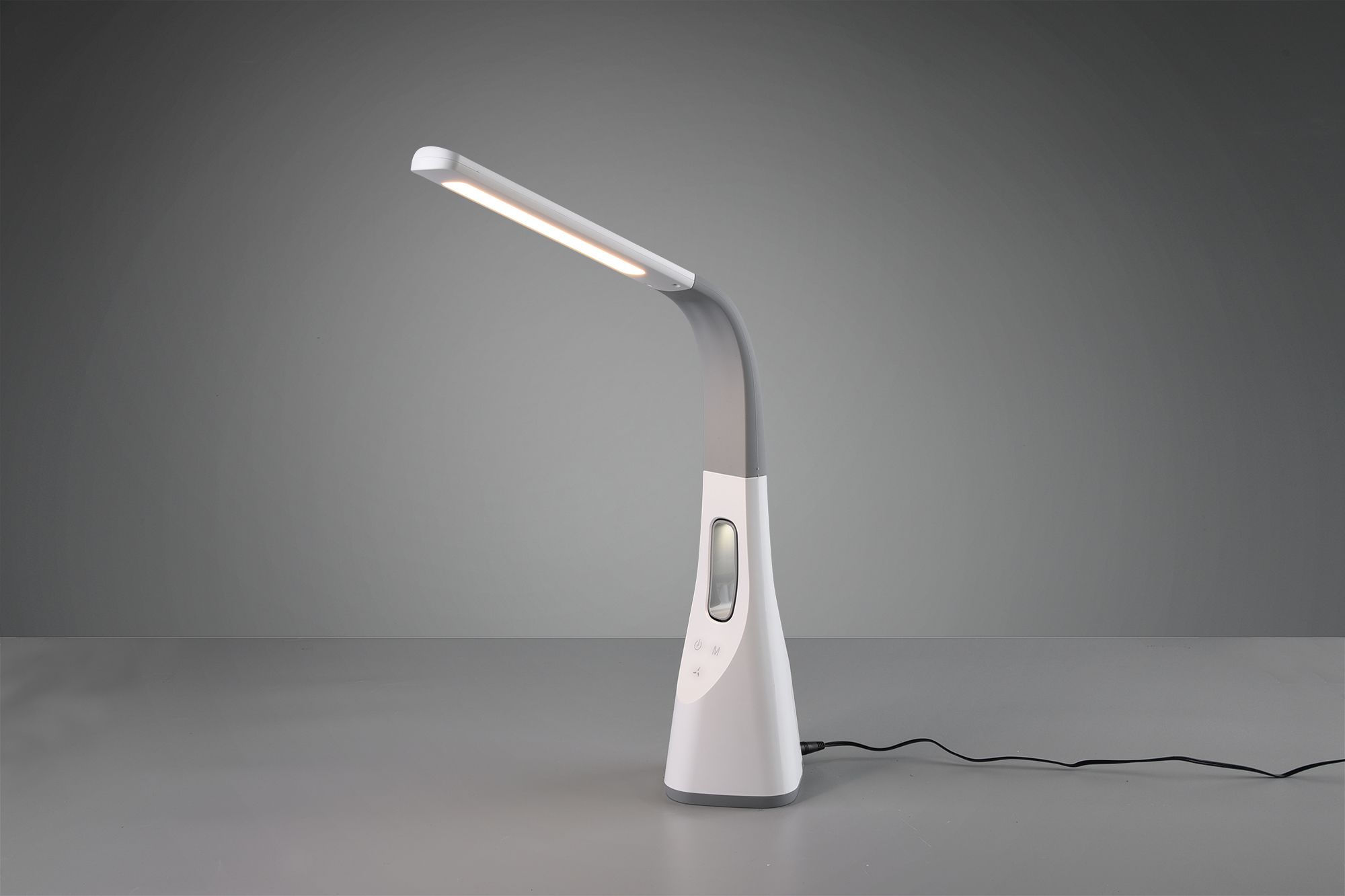 Φωτιστικό γραφείου της Trio Lighting με ενσωματωμένο LED και εύκαμπτο βραχίονα, σε λευκό χρώμα.